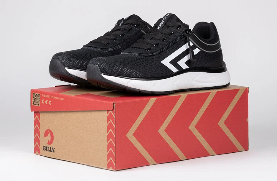 No matter how you get around, you will be moving with style in these Women’s Black/White BILLY Sport Inclusion Too Athletic Sneakers. These kicks have a padded collar, comfortable insole, and incorporate our innovative short-wrap zipper configuration that makes them easy to put on and wear all day.
